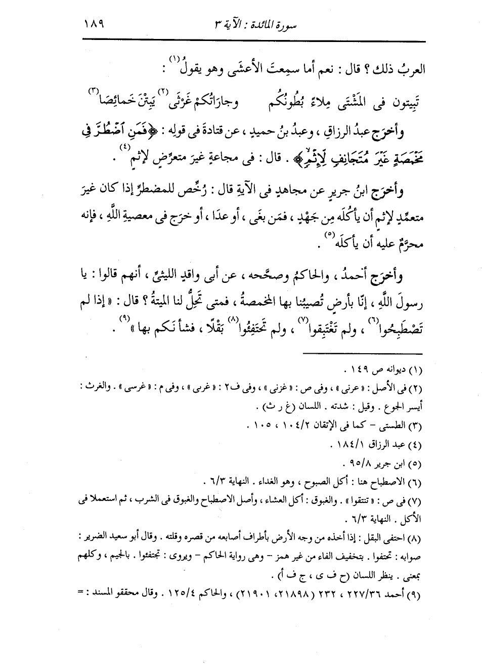 وأخرج الطستي في مسائله عن ابن عباس أن نافع بن الأزرق قال له : أخبرني عن قوله {في مخمصة} قال : في مجاعة وحهد ، قال : وهل تعرف