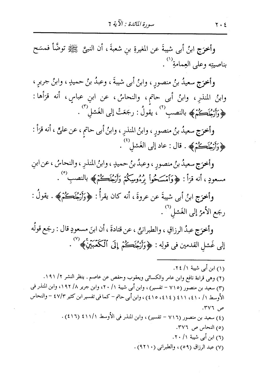 وأخرج ابن أبي شيبة عن طلحة عن أبيه عن جده قال رأيت النَّبِيّ صلى الله عليه وسلم توضأ فمسح رأسه هكذا وأمر حفص بيديه على رأسه حتى مسح قفاه