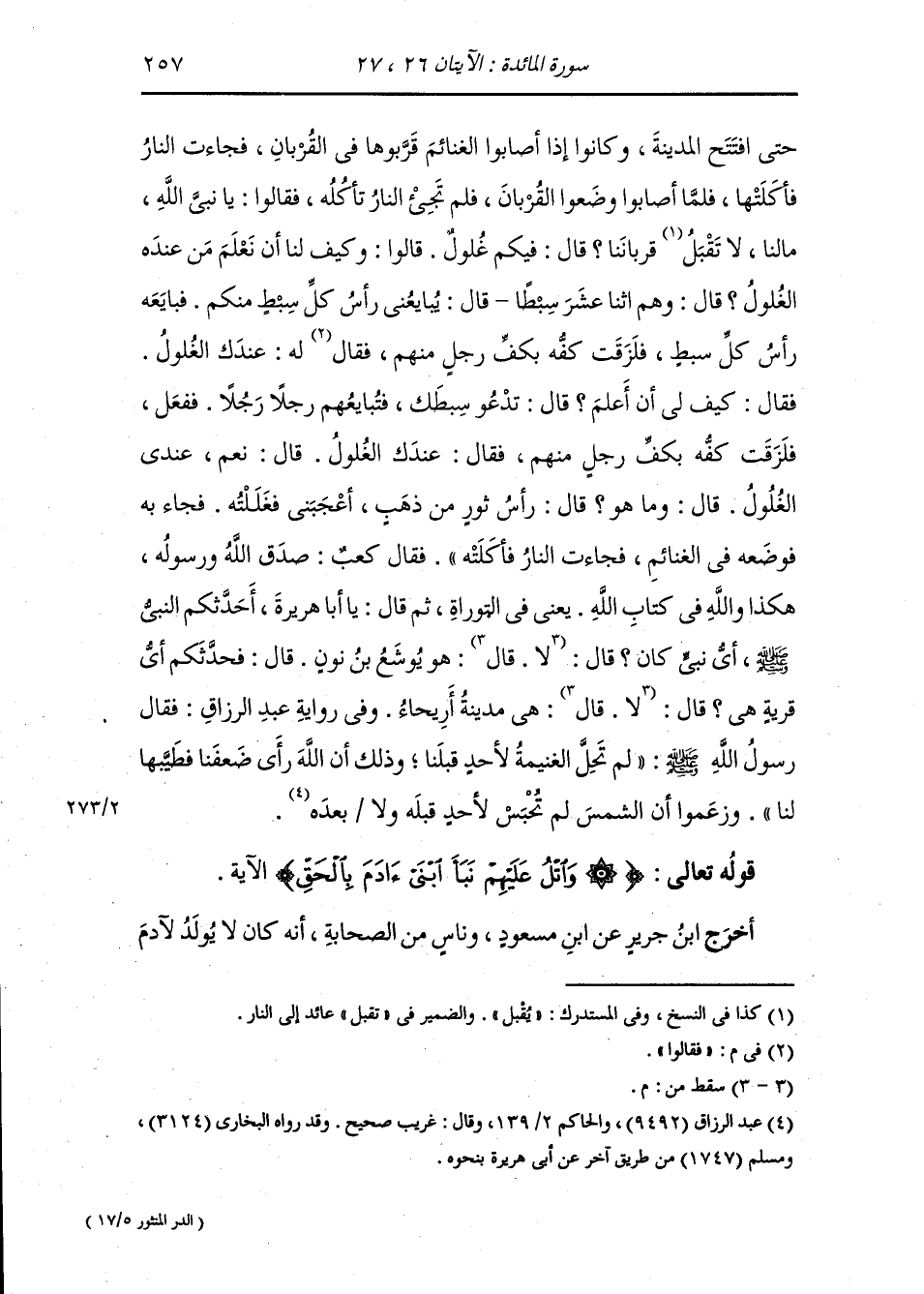 وَأخرَج عبد الرزاق في المصنف والحاكم وصححه عن أبي هريرة : سمعت
