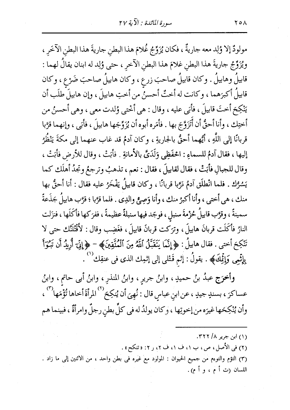 أَخْرَج ابن جرير عن ابن مسعود عن ناس من الصحابة ، أنه كان لايولد لآدم
