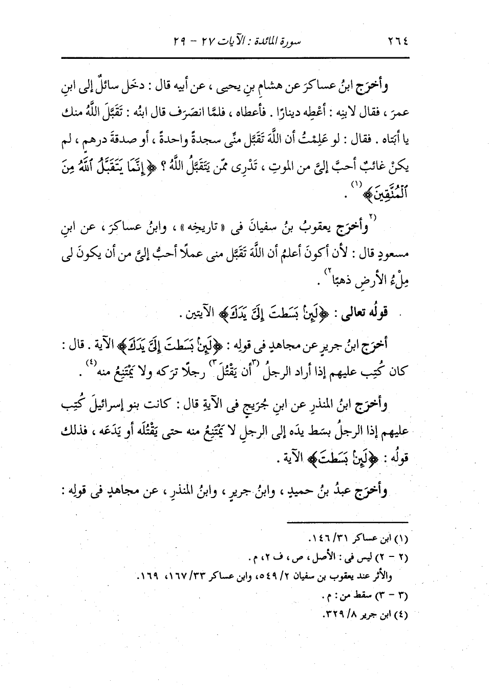 وأخرج ابن سعد ، وَابن أبي الدنيا عن قتادة قال : قال عامر بن عبد قيس آية في القرآن أحب الي من الدنيا جميعا ان أعطاه أن يجعلني الله من المتقين فانه قال {إنما يتقبل الله من المتقين}.