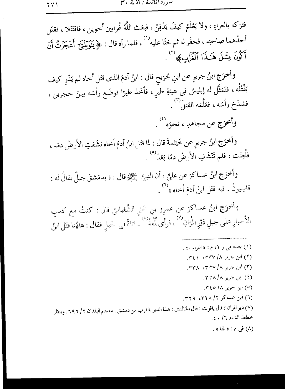 - قوله تعالى : فطوعت له نفسه قتل أخيه فقتله فأصبح من الخاسرين.