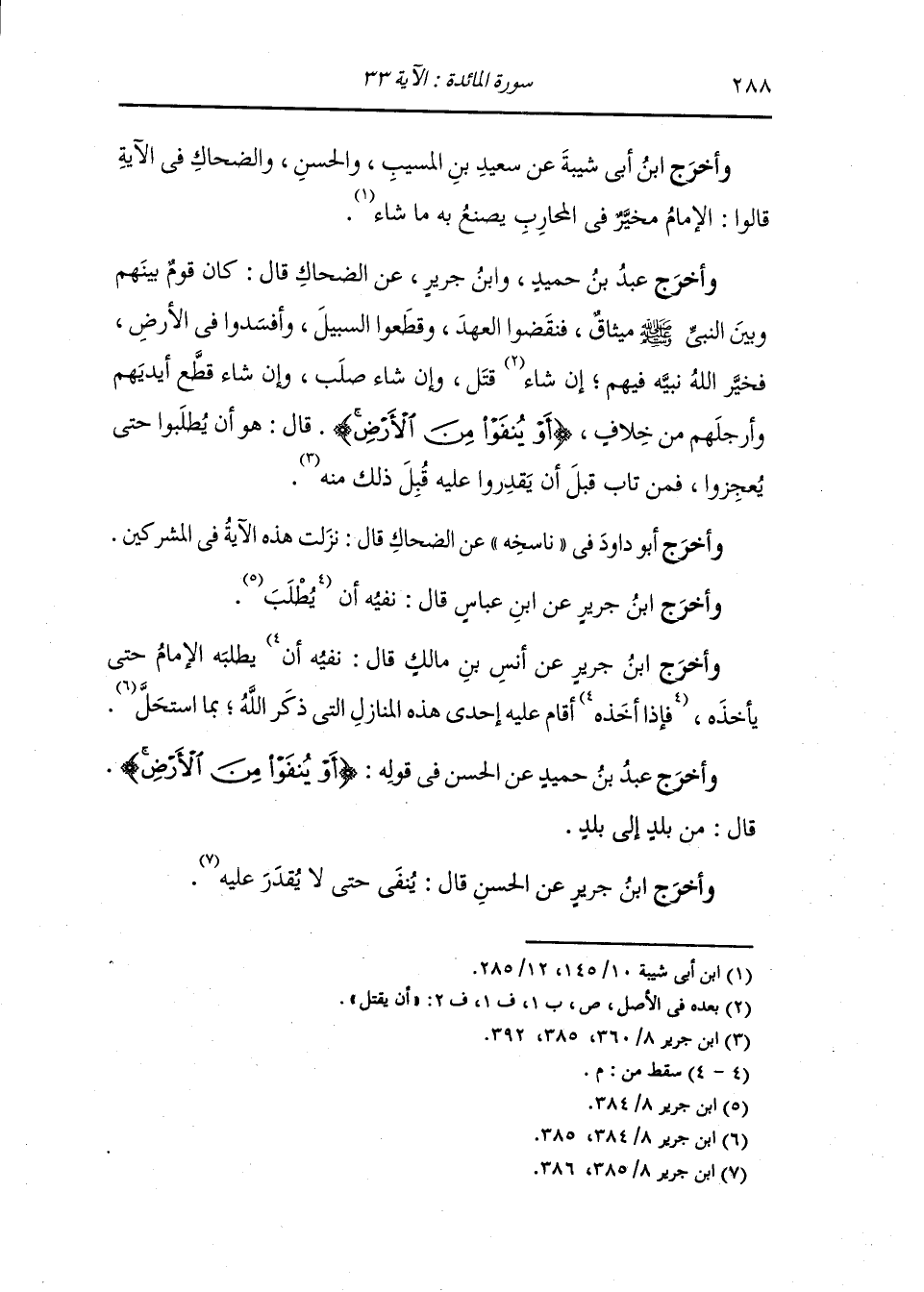 وأخرج ابن أبي شيبة ، وعَبد بن حُمَيد عن عطاء ومجاهد قالا : الإمام في ذلك مخير ان شاء قتل وان شاء قطع وان شاء صلب وان شاء نفى