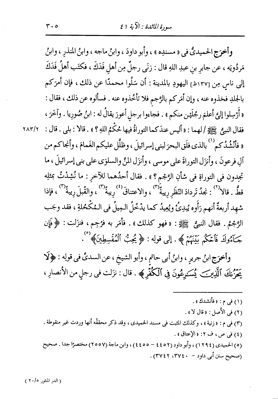 وأخرج ابن جرير ، وَابن أبي حاتم ، وَابن المنذر وأبو الشيخ ، عَن جَابر بن عبد الله في قوله {ومن الذين هادوا سماعون للكذب} قال : يهود المدينة {سماعون لقوم آخرين لم يأتوك} قال : يهود فدك {يحرفون الكلم} قال : يهود فدك {يقولون} ليهود المدينة {إن أوتيتم هذا} الجلد {فخذوه وإن لم تؤتوه فاحذروا} الرجم