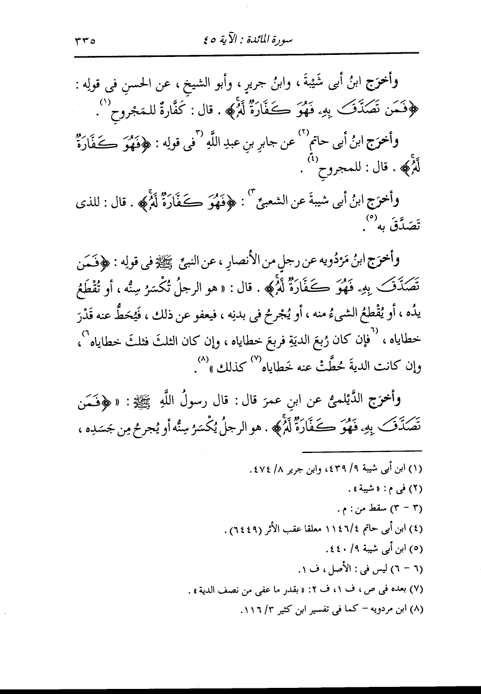 وأخرج الفريابي ، وَابن أبي شيبة ، وعَبد بن حُمَيد ، وَابن جَرِير ، وَابن أبي حاتم وأبو الشيخ ، وَابن مردويه والبيهقي في "سُنَنِه" عن عبد الله بن عمر ، في قوله {فمن تصدق به}