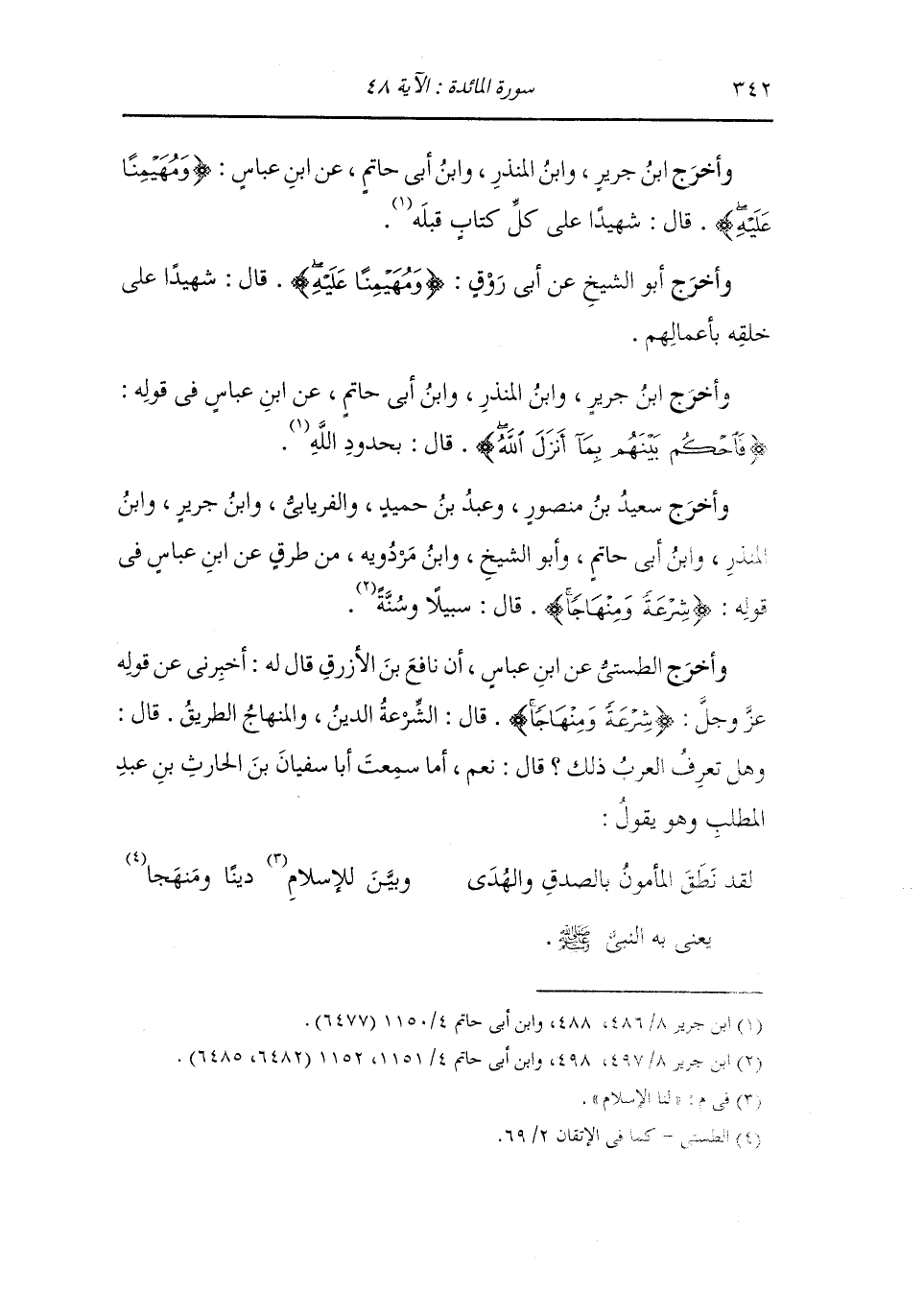 وأخرج الفريابي وسعيد بن منصور ، وعَبد بن حُمَيد ، وَابن جَرِير ، وَابن المنذر ، وَابن أبي حاتم ، وَابن مردويه والبيهقي في الاسماء والصفات عن ابن عباس في قوله {ومهيمنا عليه} قال : مؤتمنا عليه.