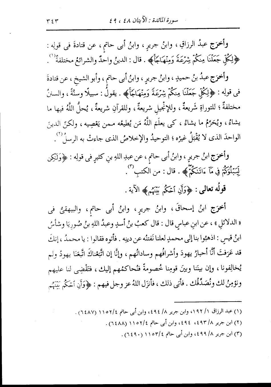 وأخرج عَبد بن حُمَيد وسعيد بن منصور والفريابي ، وَابن جَرِير ، وَابن المنذر ، وَابن أبي حاتم وأبو الشيخ ، وَابن مردويه من طرق عن ابن عباس في قوله {شرعة ومنهاجا} قال : سبيلا وسنة.