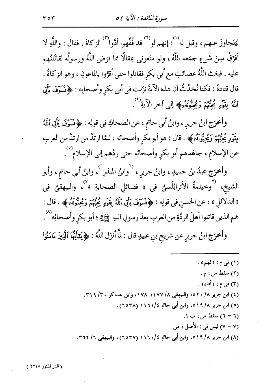 أَخْرَج عَبد بن حُمَيد ، وَابن جَرِير ، وَابن المنذر وأبو الشيخ والبيهقي ، وَابن عساكر عن قتادة قال : أنزل الله هذه الآية وقد علم أنه سيرتد مرتدون من الناس فلما قبض