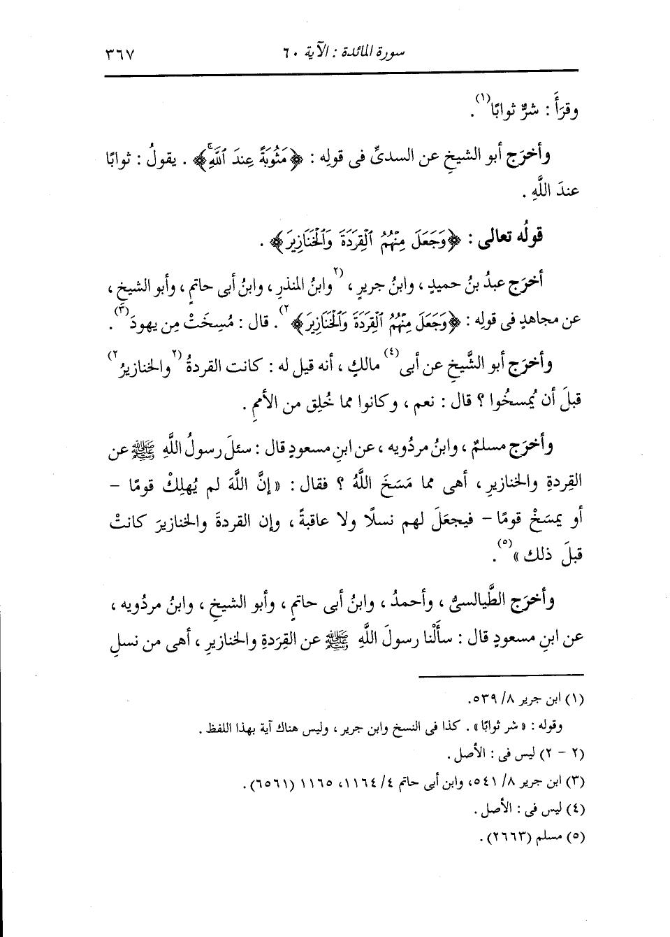 - قوله تعالى : قل هل أنبئكم بشر من ذلك مثوبة عند الله من لعنه الله وغضب عليه وجعل منهم القردة والخنازير وعبد الطاغوت أولئك شر مكانا وأضل عن سواء السبيل