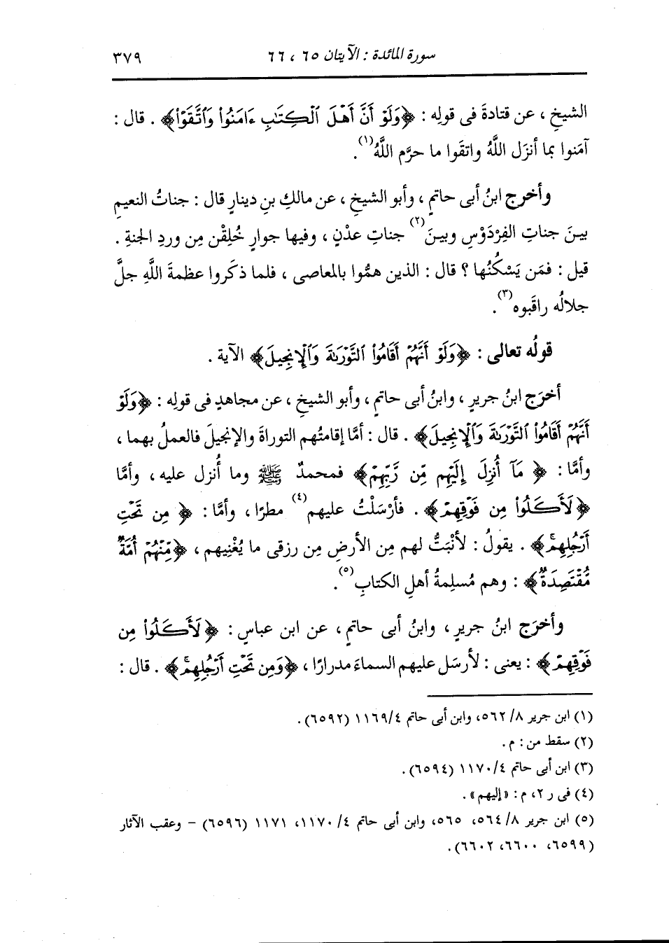 الشيخ عن قتادة في قوله {ولو أن أهل الكتاب آمنوا واتقوا} قال : آمنوا بما أنزل الله واتقوا ما حرم الله.