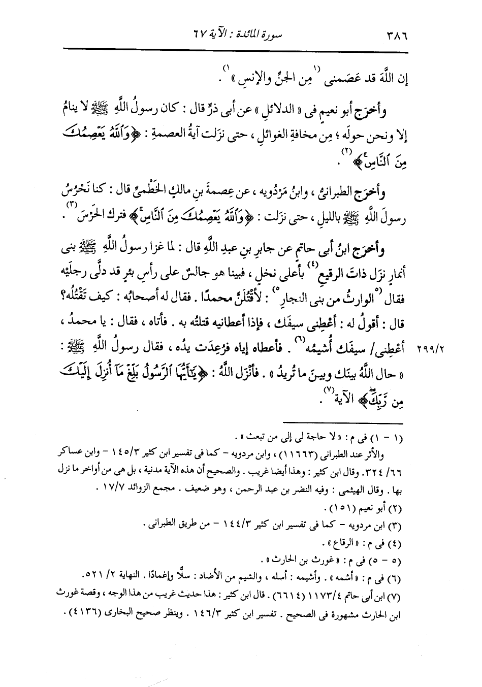 وأخرج الطبراني ، وَابن مردويه عن عصمة بن مالك الخطمي قال كنا نحرس رسول الله صلى الله عليه وسلم بالليل حتى نزلت {والله يعصمك من الناس} فترك الحرس.