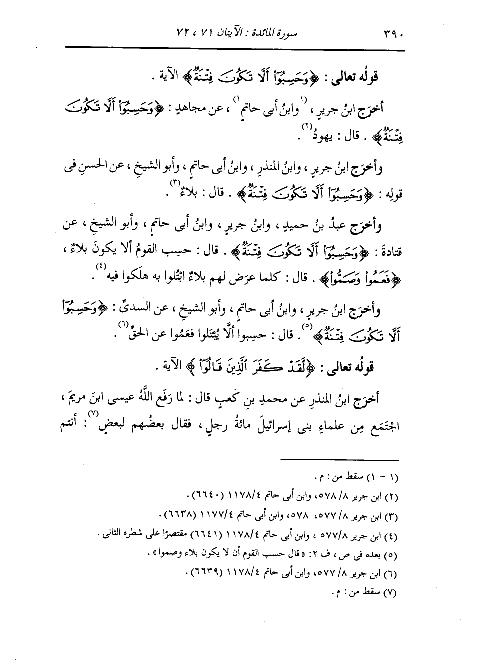 وأخرج عَبد بن حُمَيد ، وَابن جَرِير ، وَابن أبي حاتم وأبو الشيخ عن قتادة {وحسبوا ألا تكون فتنة} قال : حسب القوم أن لا يكون بلاء {فعموا وصموا} قال : كلما عرض لهم بلاء ابتلوا به هلكوا فيه.