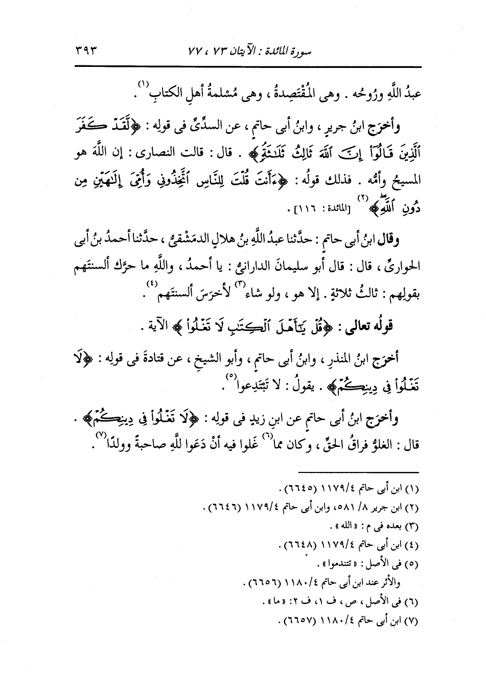 أَخْرَج ابن المنذر ، وَابن أبي حاتم أبو الشيخ عن قتادة في قوله {لا تغلوا في دينكم} يقول لا تبتدعوا.