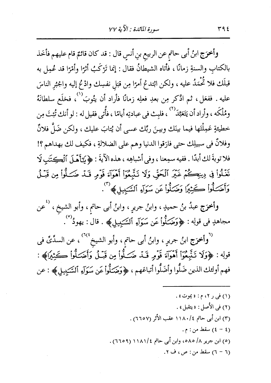 اشباهه هذه الآية {يا أهل الكتاب لا تغلوا في دينكم غير الحق ولا تتبعوا أهواء قوم قد ضلوا من قبل وأضلوا كثيرا وضلوا عن سواء السبيل}.
