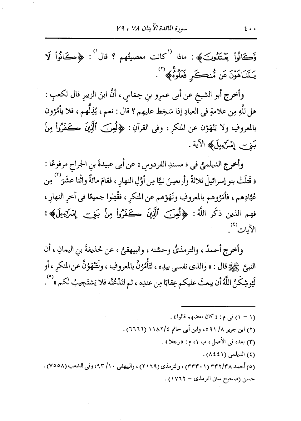 وأخرج أحمد عن عدي بن عميرة ، سمعت رسول الله صلى الله عليه وسلم يقول ان الله لايعذب العامة بعمل الخاصة حتى يروا المنكر بين ظهرانيهم وهم قادرون على ان ينكروه فاذا فعلوا ذلك عذب الله العامة والخاصة.