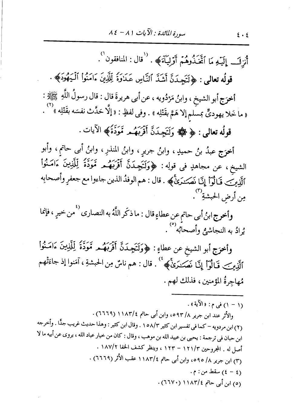 وأخرج النسائي ، وَابن جَرِير ، وَابن المنذر ، وَابن أبي حاتم والطبراني وأبو الشيخ ، وَابن مردويه عن عبد الله بن الزبير قال : نزلت هذه الآية في النجاشي وأصحابه {وإذا سمعوا ما أنزل إلى الرسول ترى أعينهم تفيض من الدمع}.