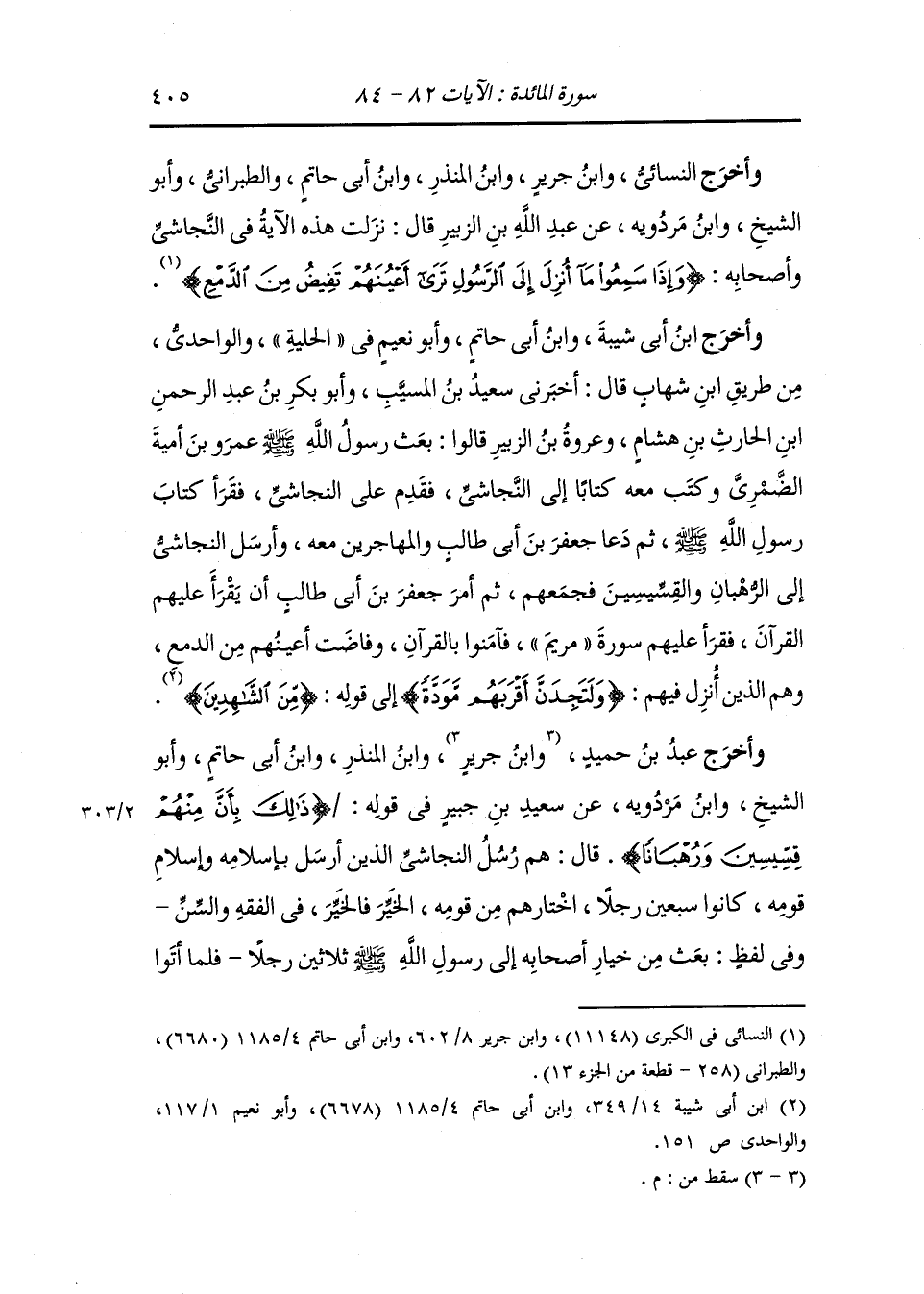 وَأخرَج ابن أبي شيبة وأبو الشيخ عن عروة قال : كانوا يرون ان هذه الآية نزلت في النجاشي {وإذا سمعوا ما أنزل إلى الرسول} قال : إنهم كانوا برايين يعني ملاحين قدموا مع جعفر بن أبي طالب من الحبشة فلما قرأ عليهم رسول الله صلى الله عليه وسلم القرأن آمنوا وفاضت أعينهم فقال رسول الله صلى الله عليه وسلم اذا رجعتم إلى ارضكم انقلبتم عن دينكم فقالوا لن ننقلب عن ديننا فأنزل الله ذلك من قولهم {وإذا سمعوا ما أنزل إلى الرسول}.