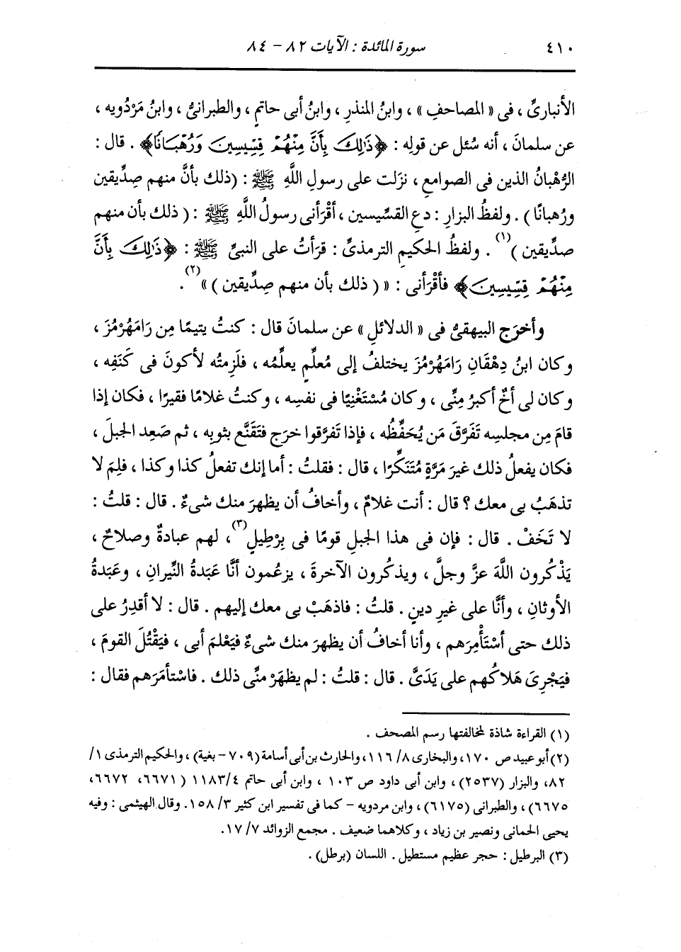 غلام عندي يتيم فأحب أن ياتيكم ويسمع كلامكم قالوا : ان كنت تثق به ، قال : أرجو ان لا يجيء منه إلا ما أحب ، قالوا : فجيء به ، فقال لي : قد استأذنت القوم أن تجيء معي فاذا كانت الساعة التي رأيتني أخرج فيها فأتني ولا يعلم بك احد فان ابي إن علم قتلهم ، قال : فلما كانت الساعة التي يخرج تبعته فصعد الجبل فانتهينا إليهم فإذا هم في برطيلهم ، قال : علي ، وأراه قال : هم ستة او سبعة ، قال : وكانت الروح قد خرجت منهم من العبادة يصومون النهار ويقومون الليل يأكلون الشجر وما وجدوا فقعدنا إليهم فأثنى ابن الدهقان علي خيرا فتكلموا فحمدوا الله واثنوا عليه وذكروا من مضى من الرسل والأنبياء حتى خلصوا إلى عيسى بن مريم قالوا : بعثه الله وولده بغير ذكر بعثه الله رسوله وسخر له ماكان يفعل من إحياء الموتى وخلق الطير وابراء الأعمى والأبرص فكفر به قوم وتبعه قوم ، وإنما كان عبد الله ورسوله ابتلى به خلقه ، قال : وقالوا قبل ذلك : ياغلام ان لك ربا وان لك معادا وان بين يديك جنة ونارا إليها تصير وان هؤلاء القوم الذين يعبدون النيران أهل كفر وضلالة لايرضى الله بما يصنعون وليسوا على دين فلما حضرت الساعة التي ينصرف فيها الغلام انصرف وانصرفت معه ثم غدونا إليهم فقالوا مثل ذلك وأحسن فلزمتهم فقالوا : ياغلام إنك غلام وانك لا تستطيع أن تصنع كما نصنع فكل واشرب وصل ونم ، قال : فاطلع الملك على صنيع ابنه فركب الخيل حتى اتاهم في برطيلهم فقال : ياهؤلاء قد جاورتموني فأحسنت جوراكم ولم تروا مني سوءا فعمدتم إلى ابني فافسدتموه علي قد أجلتكم ثلاثا فان قدرت عليكم بعد ثلاث أحرقت عليكم برطيلكم هذا
