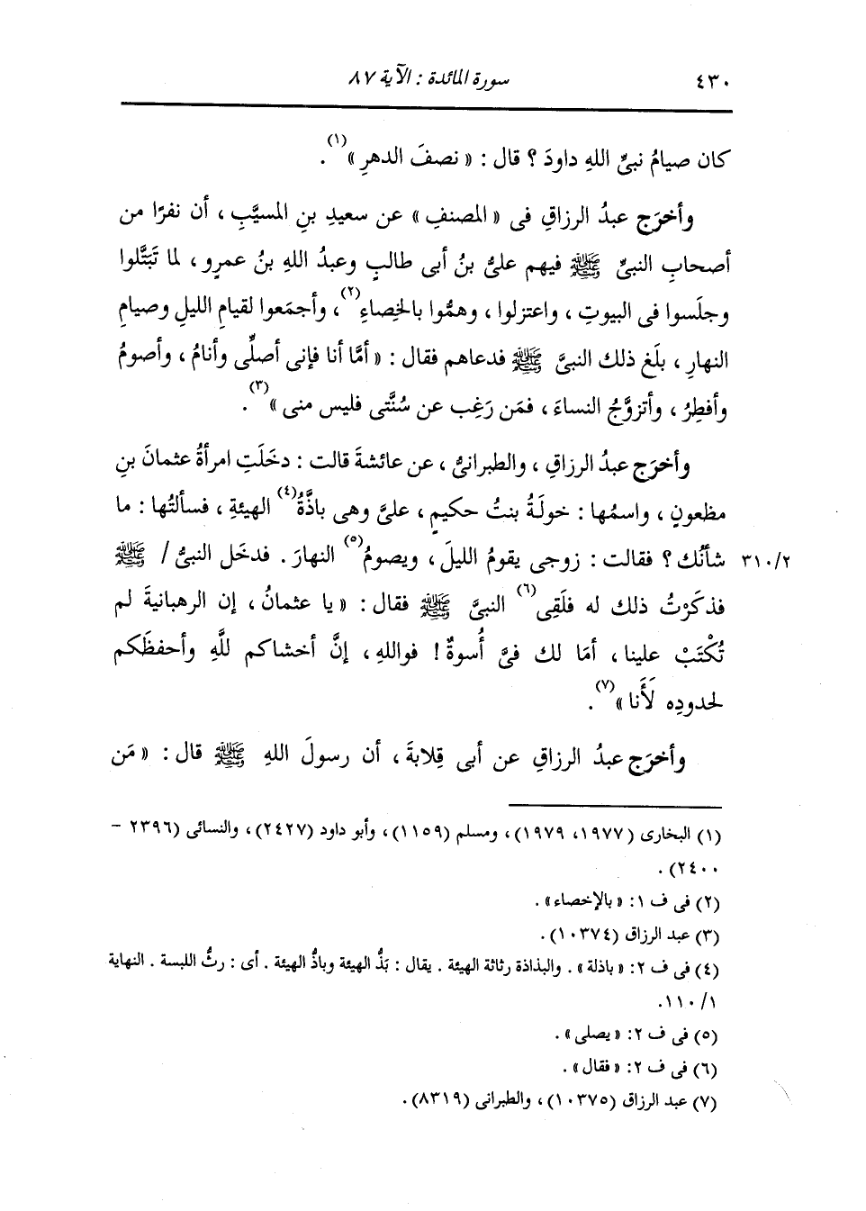 وأخرج ابن سعد عن ابن شهاب أن عثمان بن مظعون أراد أن يختصي ويسيح في الأرض فقال له رسول الله صلى الله عليه وسلم : أليس لك في أسوة فاني آتي النساء وآكل اللحم وأصوم وأفطر ان خصاء أمتي الصيام وليس من أمتي من خصى او اختصى.