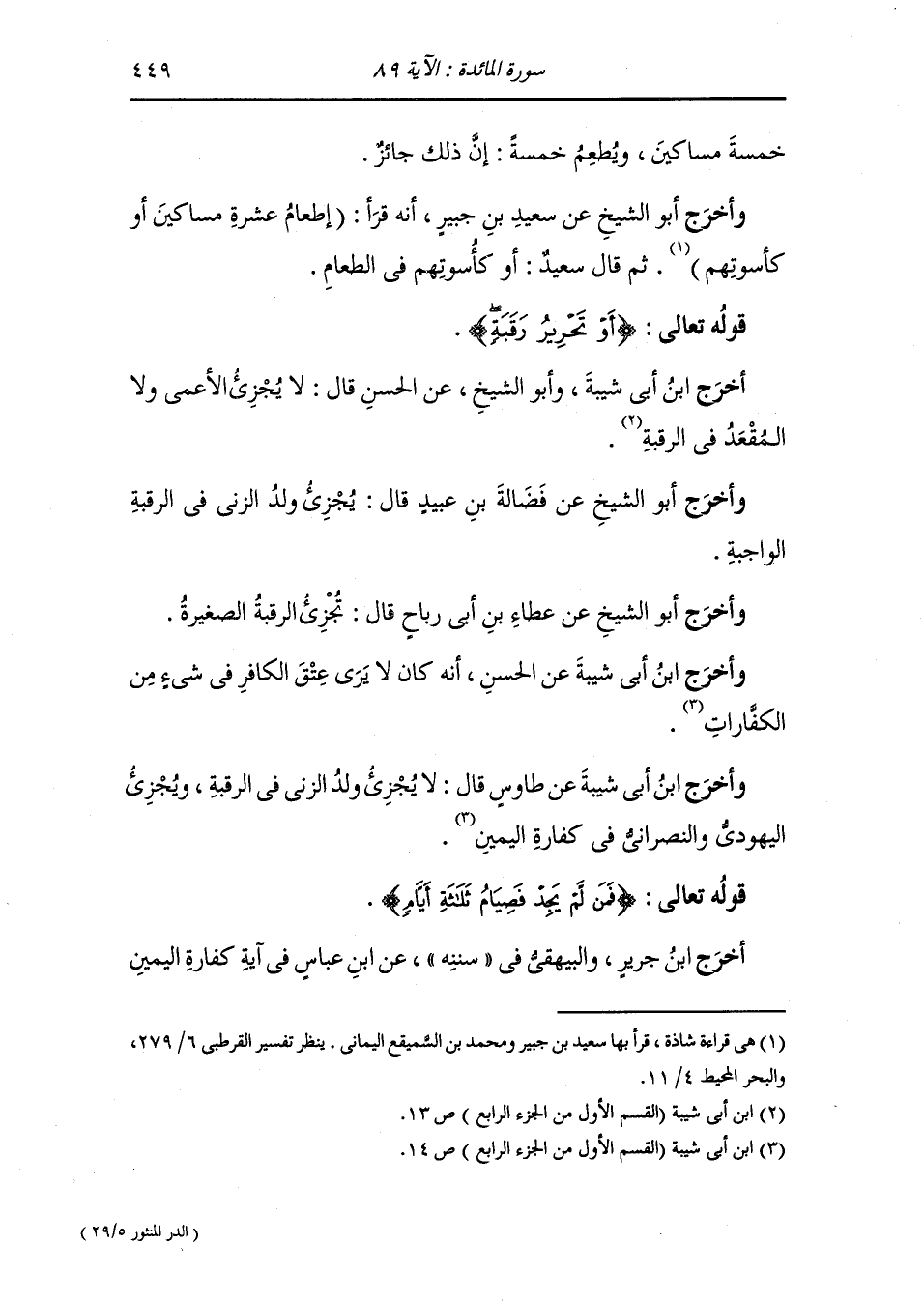 وأخرج ابن مردويه عن ابن عباس قال : لما نزلت آية الكفارات قال حذيفة : يا رسول الله نحن بالخيار قال أنت بالخيار إن شئت أعتقت وإن شئت كسوت وان شئت أطعمت فمن لم يجد فصيام ثلاثة أيام متتابعات.