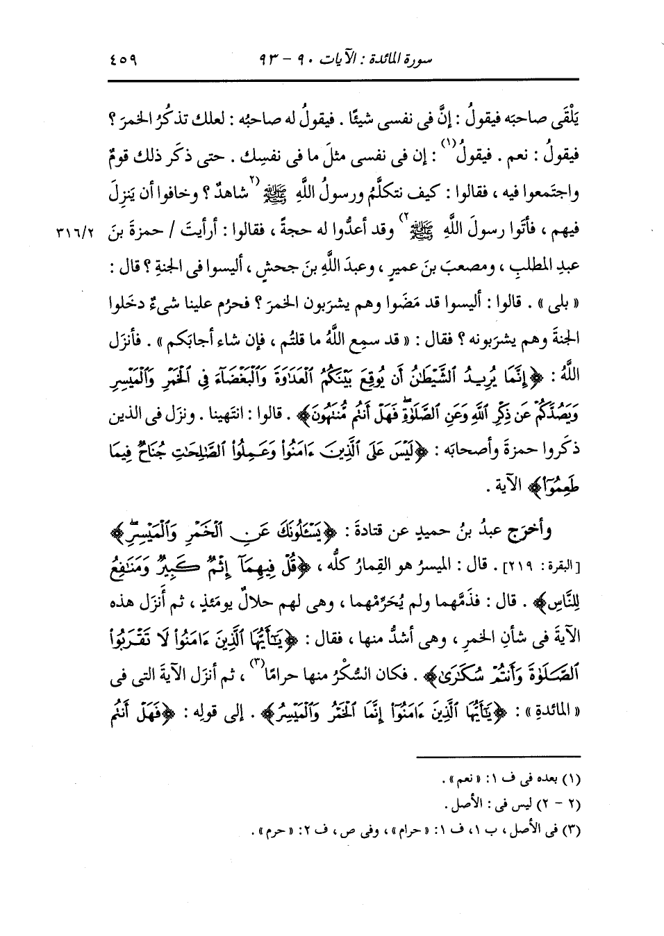 النساء الآية 43 الآية ، فقال بعض الناس : نشربها ونجلس في بيوتنا وقال آخرون : لا خير في شيء يحول بيننا وبين الصلاة مع المسلمين فنزلت {يا أيها الذين آمنوا إنما الخمر والميسر} الآية ، فانتهوا فنهاهم فانتهوا.