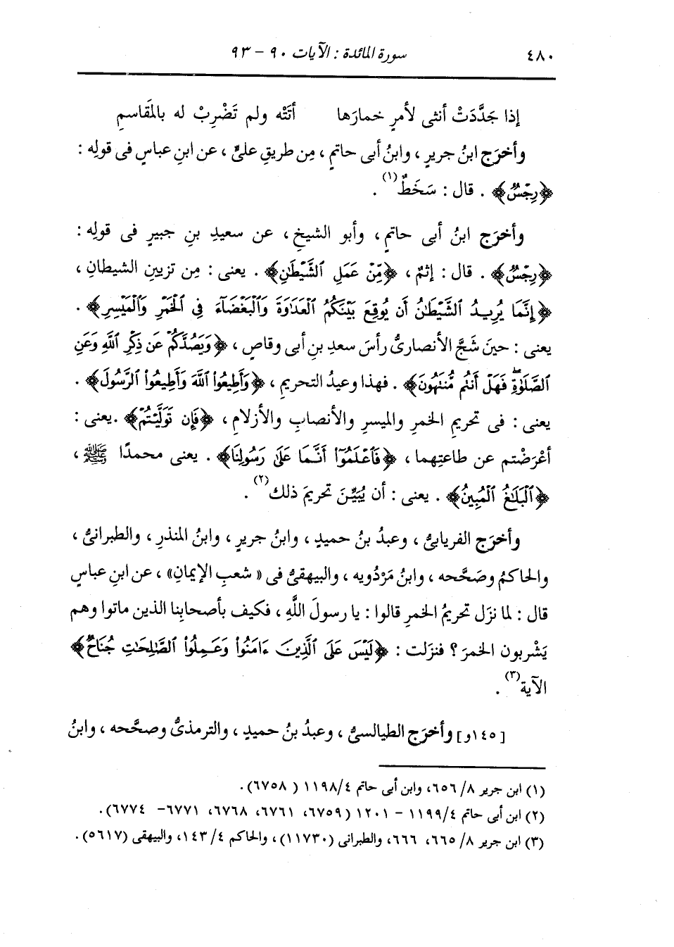 : جرير ، وَابن المنذر ، وَابن أبي حاتم ، وَابن حبان وأبو الشيخ ، وَابن مردويه عن البراء بن عازب قال : مات ناس من أصحاب النَّبِيّ صلى الله عليه وسلم وهم يشربون الخمر فلما نزل تحريمها قال أناس من أصحاب النَّبِيّ صلى الله عليه وسلم : كيف بأصحابنا الذين ماتوا وهم يشربونها فنزلت {ليس على الذين آمنوا وعملوا الصالحات جناح} الآية.