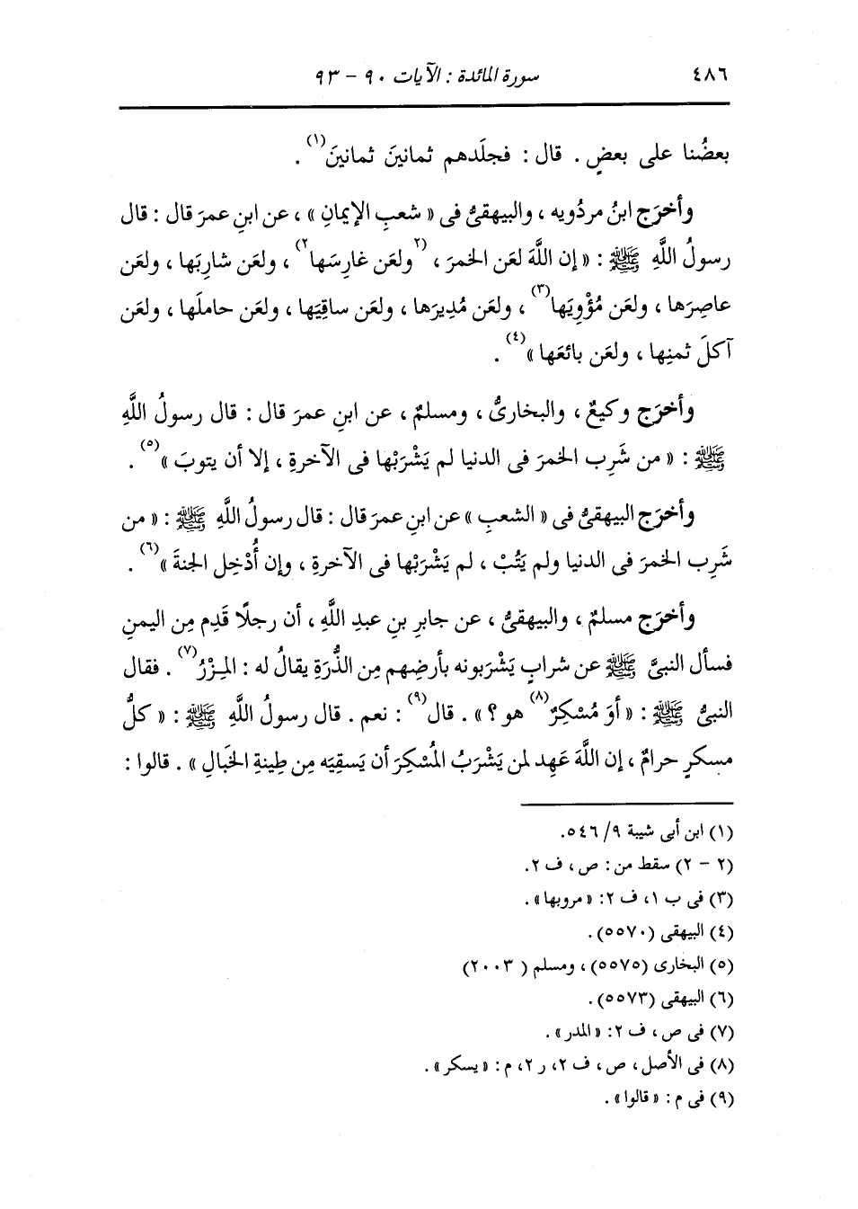 وأخرج البيهقي عن عبد الله بن عمرو بن العاص ، سمعت رسول الله صلى الله عليه وسلم يقول من شرب الخمر شربة لم تقبل صلاته أربعين صباحا فإن تاب تاب الله عليه فإن عاد لم تقبل توبته أربعين صباحا فلا أدري أفي الثالثة أو في الرابعة قال : فإن عاد كان حقا على الله أن يسقيه من ردغة الخبال يوم القيامة