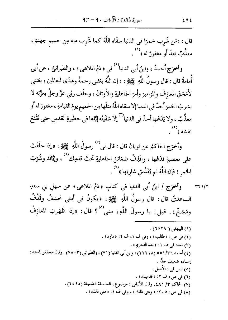 وأخرج ابن أبي الدنيا عن عمران بن حصين قال : قال رسول الله صلى الله عليه وسلم يكون في أمتي وقذف ومسخ وخسف ، قيل : يا رسول الله صلى الله عليه وسلم ومتى ذلك قال : إذا ظهرت المعازف وكثرت القينات وشربت الخمر.