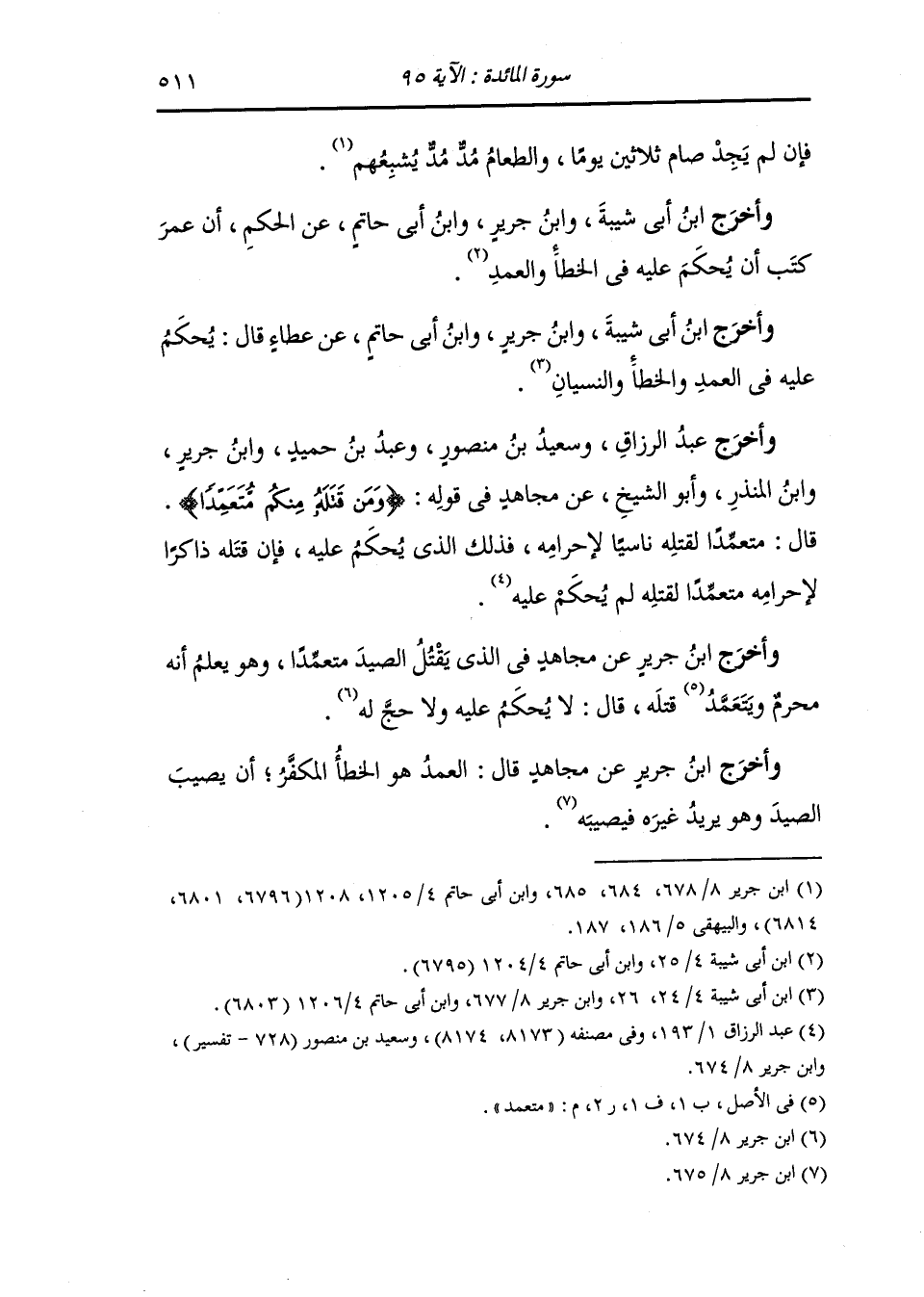 وأخرج الشافعي ، وعَبد بن حُمَيد ، وَابن جَرِير عن مجاهد قال : من قتله متعمدا غير ناس لإحرامه ولا يريد غيره فقد حل وليست له رخصة ومن قتله ناسيا لإحرامه أو أراد غيره فأخطأ به فذلك العمد المكفر.