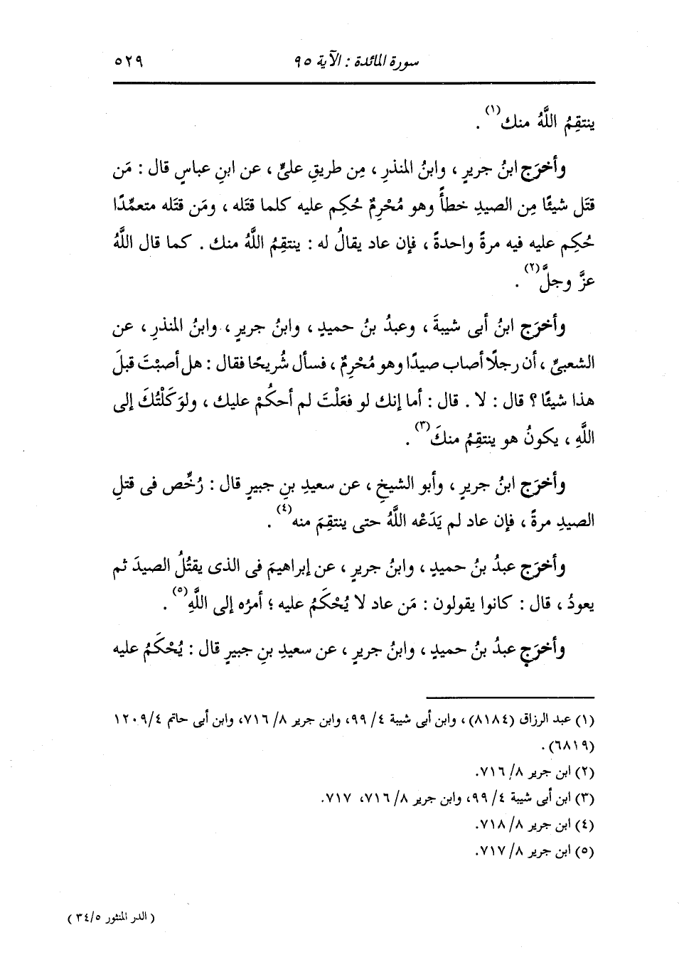وأخرج ابن جرير ، وَابن أبي حاتم من طريق زيد أبي المعلى عن الحسن ، أن رجلا أصاب صيدا وهو محرم فتجوز عنه ثم عاد فأصاب صيدا آخر فنزلت نار من السماء فأحرقته فهو قوله {ومن عاد فينتقم الله منه}.