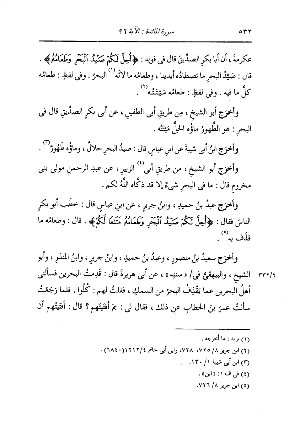 وأخرج سعيد بن منصور ، وعَبد بن حُمَيد ، وَابن جَرِير ، وَابن المنذر ، وَابن أبي حاتم وأبو الشيخ والبيهقي في "سُنَنِه" من طرق عن ابن عباس قال : صيده ما صيد وطعامه ما لفظ به البحر وفي رواية ما قذف به يعني ميتا.