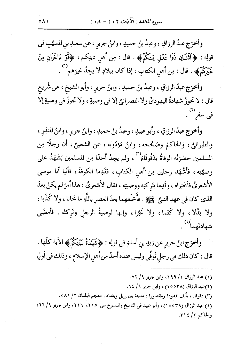 وأخرج أبو عبيد وسعيد بن منصور ، وعَبد بن حُمَيد ، وَابن جَرِير وأبوالشيخ عن ابن عباس أنه كان يقرأ (من الذين استحق عليهم الأولين) ويقول : أرأيت لو كان الأوليان صغيرين كيف يقومان مقامهما