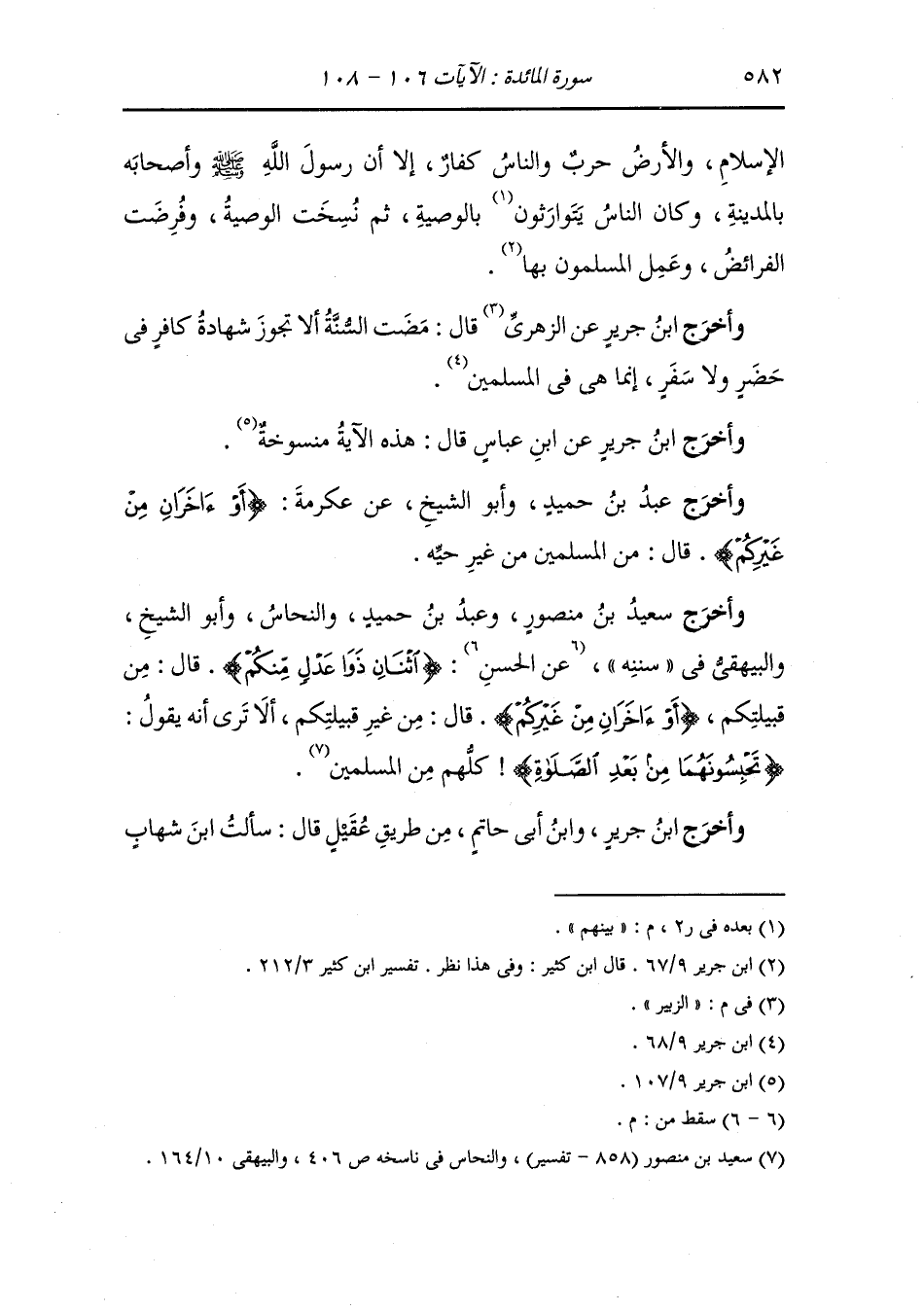 وأخرج ابن جرير ، وَابن المنذر ، وَابن أبي حاتم وأبوالشيخ عن قتادة في قوله {ذلك أدنى أن يأتوا بالشهادة على وجهها} يقول : ذلك أحرى أن يصدقوا في شهادتهم {أو يخافوا أن ترد أيمان بعد أيمانهم} يقول : وأن يخافوا العنت.