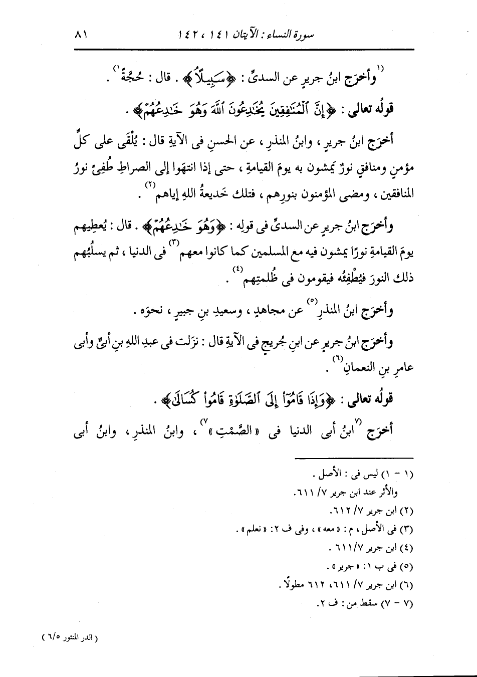 وأخرج ابن جرير عن السدي {سبيلا} قال : حجة.