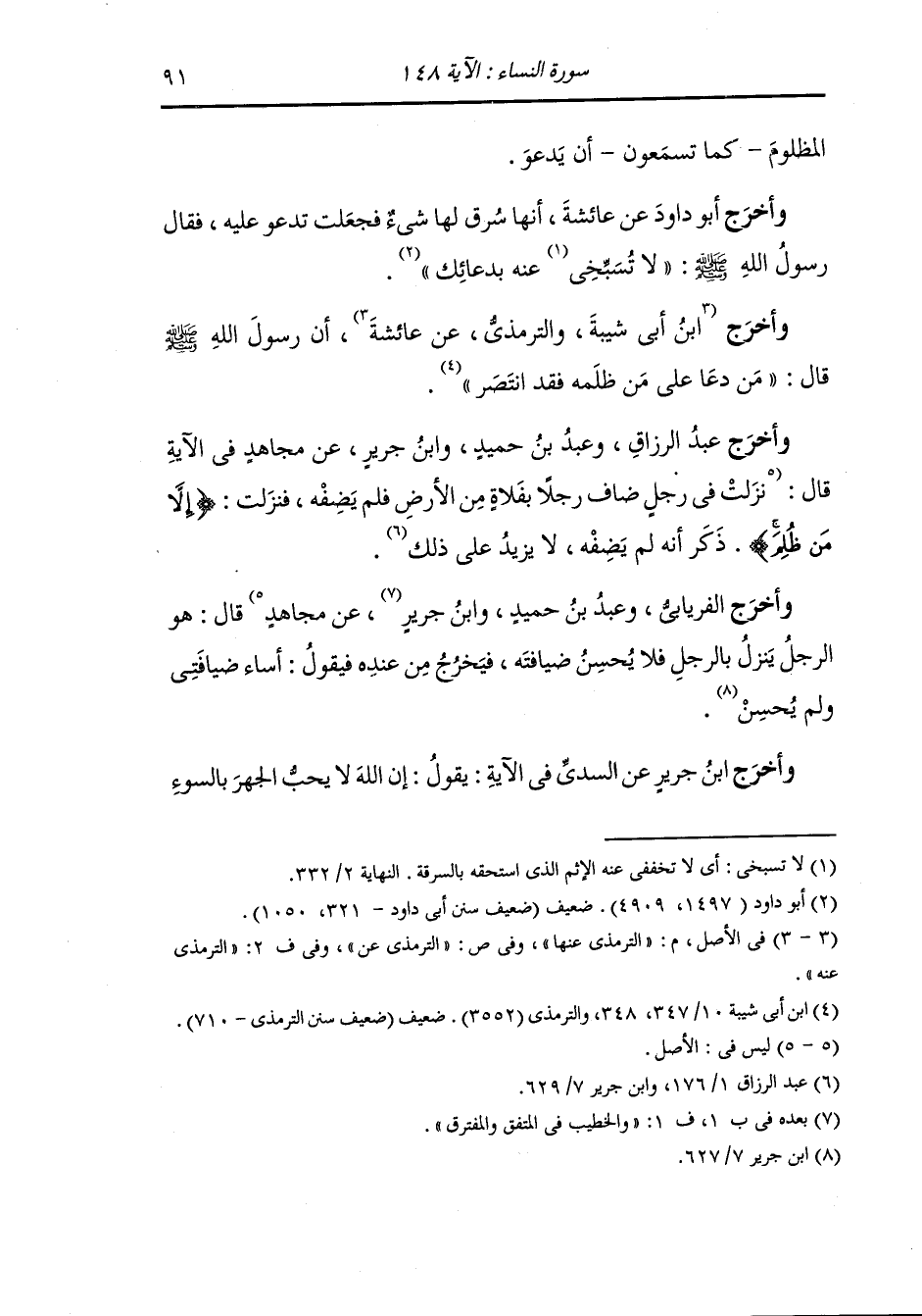 وأخرج عبد الرزاق ، وعَبد بن حُمَيد ، وَابن جَرِير عن مجاهد في الآية قال : نزلت في رجل ضاف رجلا بفلاة من الأرض فلم يضفه فنزلت {إلا من ظلم} ذكر أنه لم يضفه لا يزيد على ذلك.