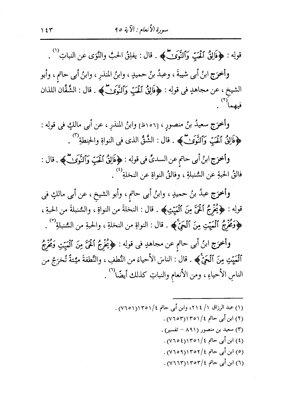 وأخرج ابن أبي حاتم عن السدي رضي الله عنه في قوله {فالق الحب والنوى} قال : فالق الحبة عن السنبلة وفالق النواة عن النخلة.
