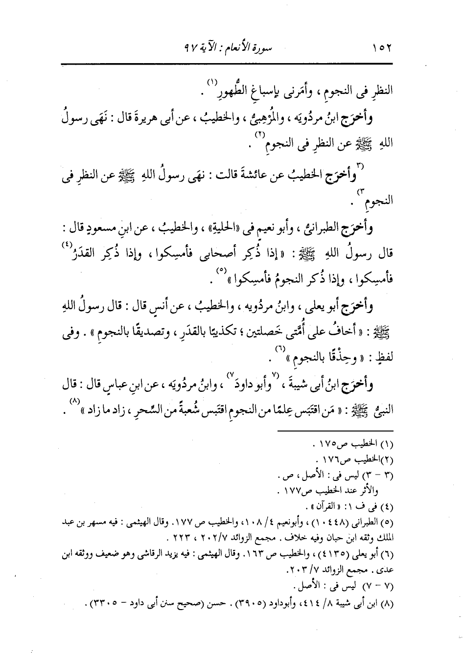 وأخرج ابن مردويه والمرهبي والخطيب عن أبي هريرة قال نهى رسول الله صلى الله عليه وسلم عن النظر في النجوم.
