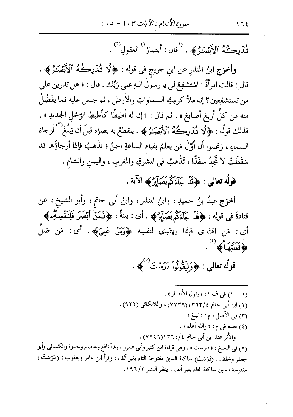 - أَخْرَج عَبد بن حُمَيد ، وَابن المنذر ، وَابن أبي حاتم وأبو الشيخ عن قتادة في قوله {قد جاءكم بصائر} أي بينة {فمن أبصر فلنفسه} أي من اهتدى فإنما يهتدي لنفسه {ومن عمي} أي من ضل {فعليها} والله أعلم ، قوله تعالى : {وليقولوا درست}.