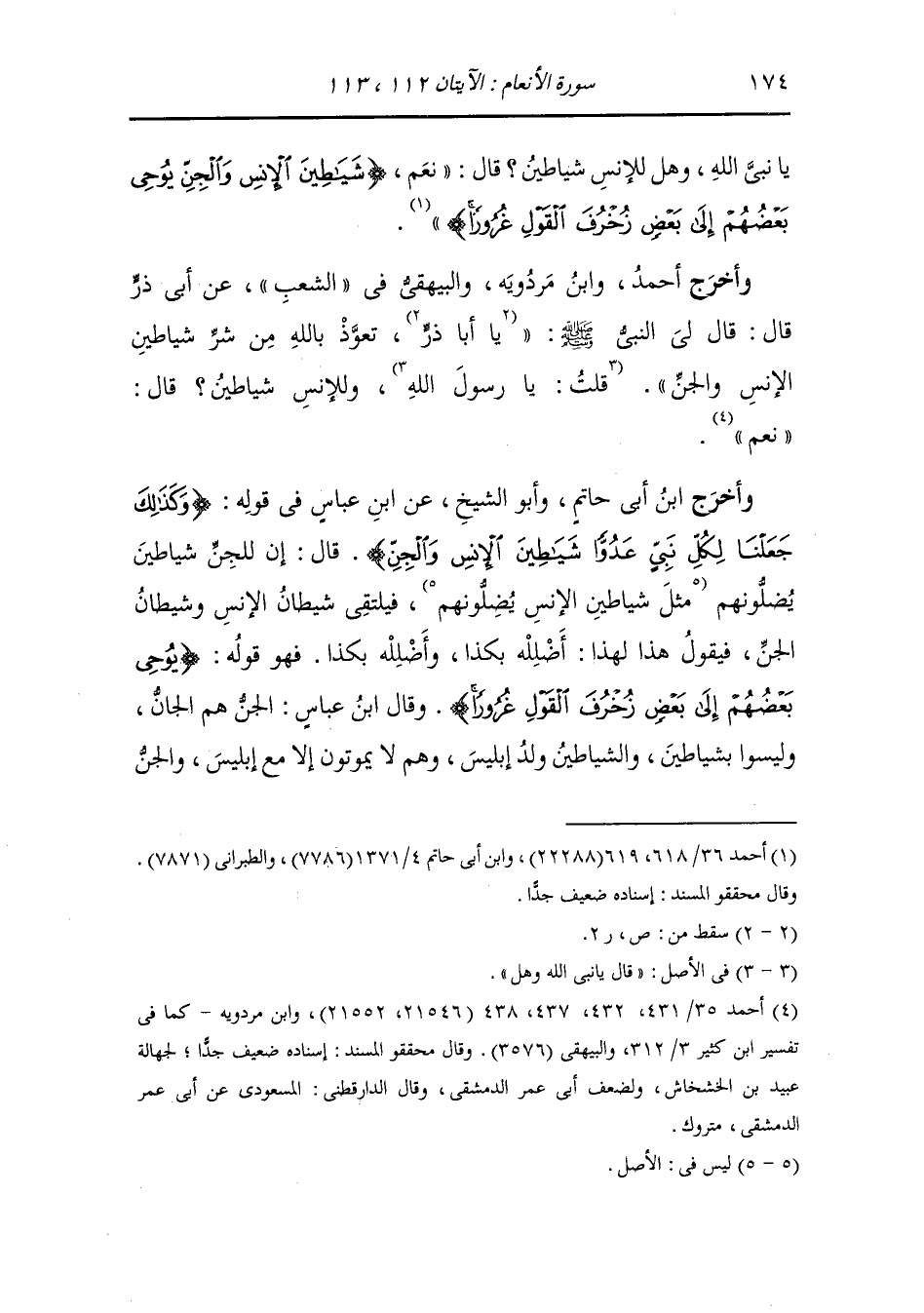وأخرج أحمد ، وَابن مردويه والبيهقي في الشعب عن أبي ذر قال : قال لي النَّبِيّ صلى الله عليه وسلم تعوذ شياطين الإنس والجن ، قلت : يا رسول الله وللإنس شياطين قال : نعم.