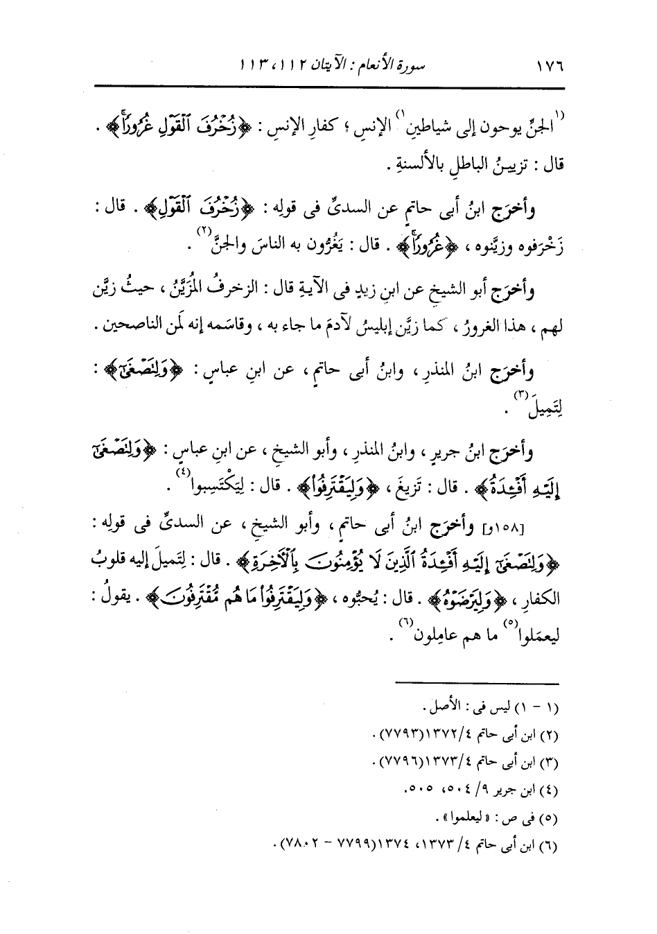 وأخرج ابن أبي حاتم وأبو الشيخ عن السدي في قوله {ولتصغى إليه أفئدة الذين لا يؤمنون بالآخرة} قال : لتميل إليه قلوب الكفار {وليرضوه} قال : يحبوه {وليقترفوا ما هم مقترفون} يقول : ليعملوا ما هم عاملون