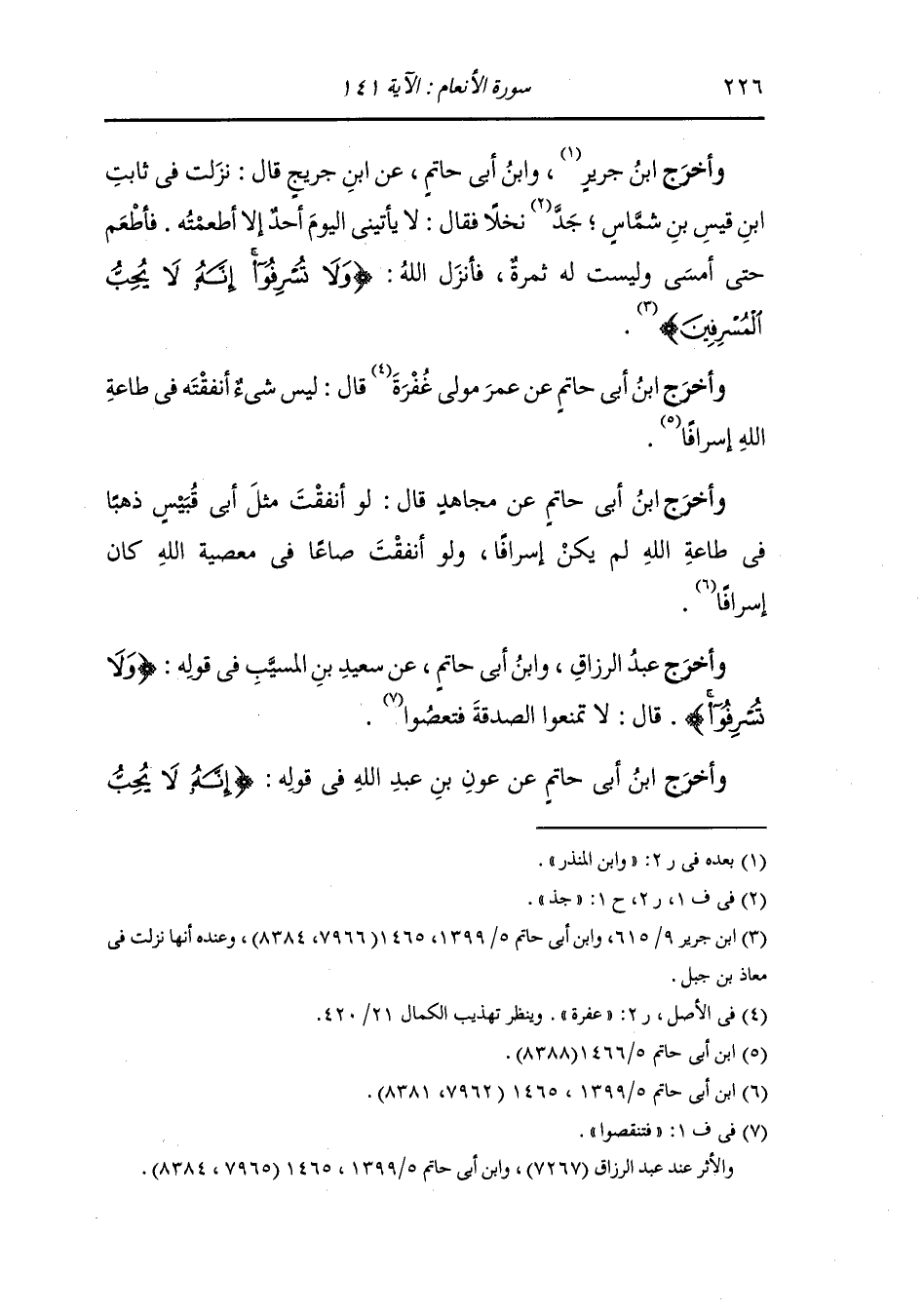 وأخرج عبد الرزاق ، وَابن أبي حاتم عن سعيد بن المسيب في قوله {ولا تسرفوا} قال : لا تمنعوا الصدقة فتعصوا.