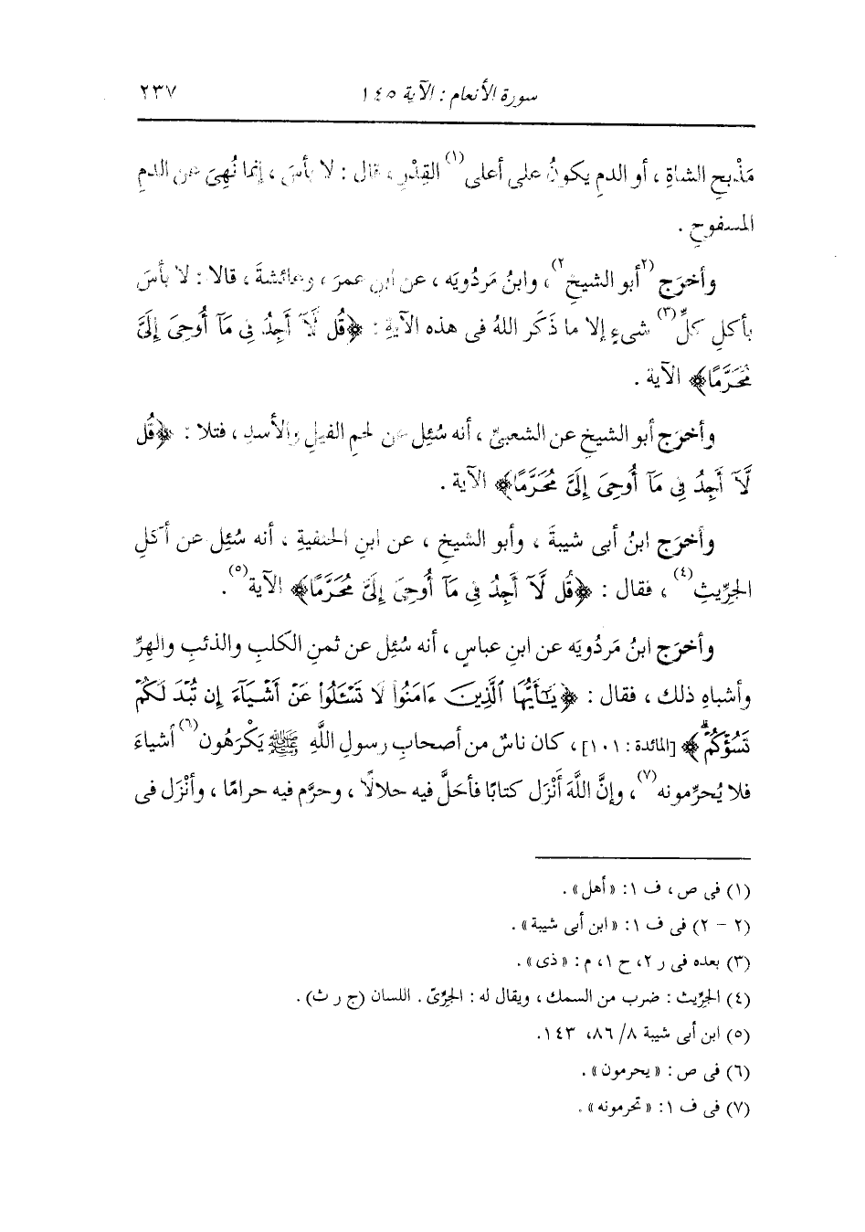 وأخرج أبو الشيخ عن الشعبي ، أنه سئل عن لحم الفيل والأسد فتلا قل {لا أجد فيما أوحي إلي} الآية.
