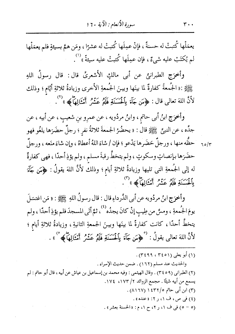 وأخرج الطبراني عن أبي مالك الأشعري قال : قال رسول الله صلى الله عليه وسلم الجمعة كفارة لما بينها وبين الجمعة الأخرى وزيادة ثلاثة أيام وذلك لأن الله تعالى قال {من جاء بالحسنة فله عشر أمثالها}.