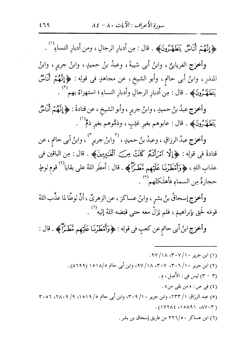 وأخرج الفريابي ، وَابن أبي شيبة ، وعَبد بن حُمَيد ، وَابن جَرِير ، وَابن المنذر ، وَابن أبي حاتم وأبو الشيخ عن مجاهد في قوله {إنهم أناس يتطهرون} قال : من أدبار الرجال وأدبار النساء استهزاء بهم.