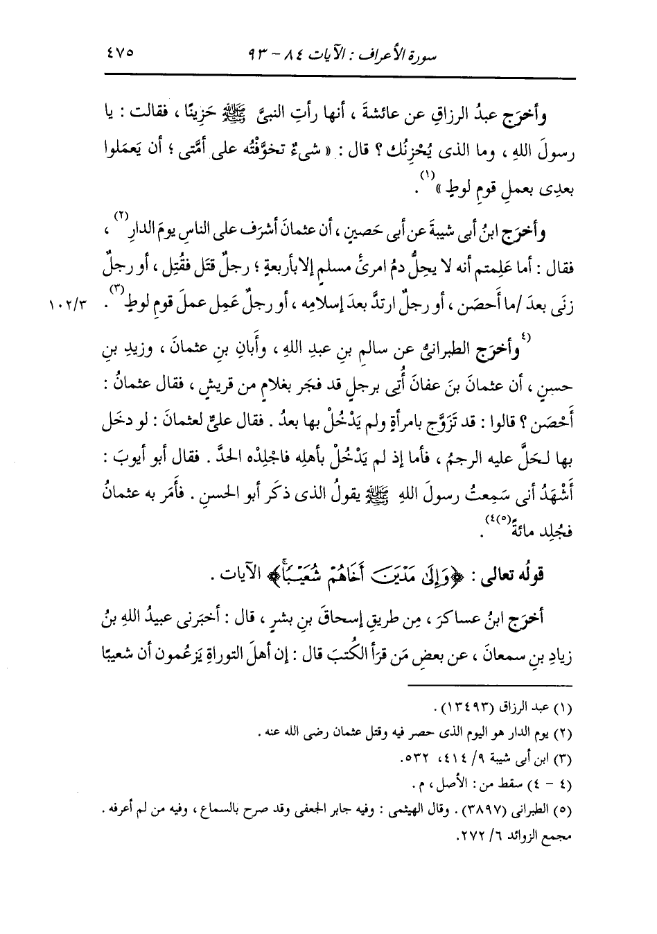 وأخرج ابن أبي شيبة عن أبي حصين ، أن عثمان أشرف على الناس يوم الدار فقال : أما علمتم أنه لا يحل دم امرى ء مسلم إلا أربعة ، رجل قتل فقتل أو رجل زنى بعدما أحصن أو رجل ارتد بعد إسلامه أو رجل عمل عمل قوم لوط.