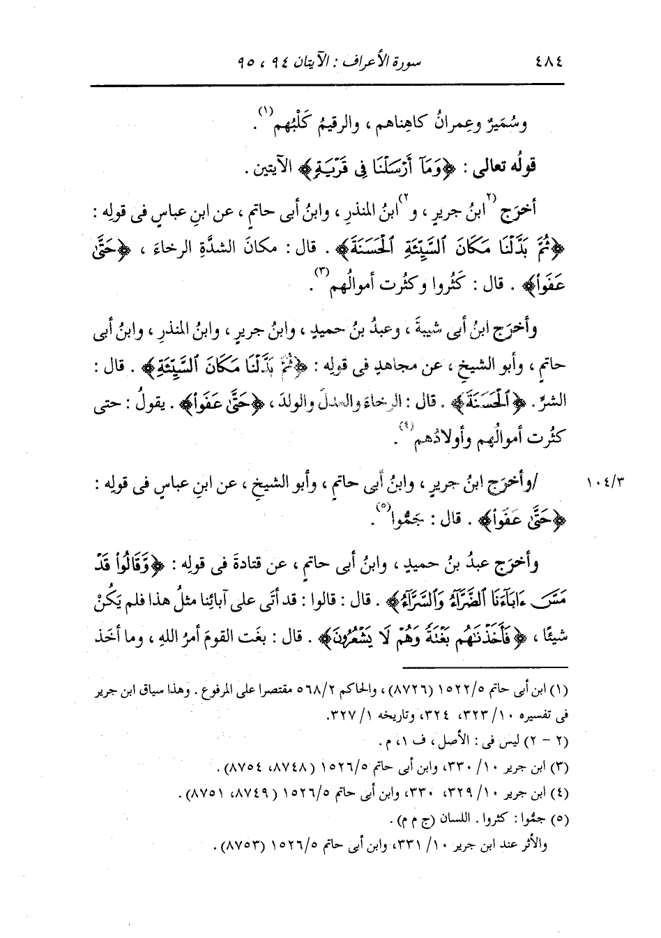 أَخْرَج ابن المنذر ، وَابن أبي حاتم عن ابن عباس في قوله {ثم بدلنا مكان السيئة الحسنة} قال : مكان الشدة الرخاء {حتى عفوا} قال : كثروا وكثرت أموالهم.