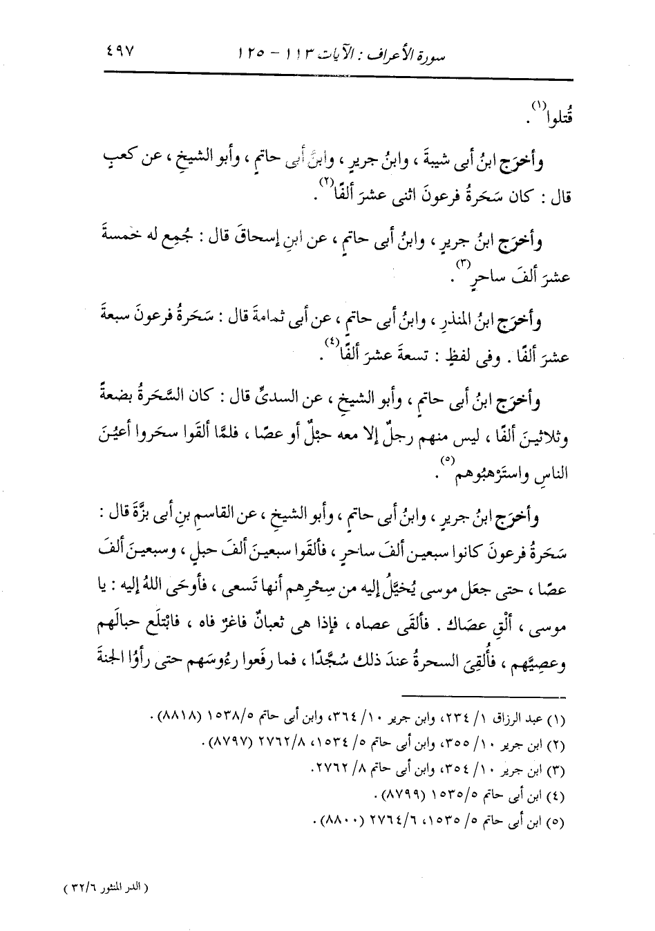 وأخرج ابن أبي شيبة ، وَابن جَرِير ، وَابن أبي حاتم وأبو الشيخ عن كعب قال : كان سحرة فرعون اثني عشر ألفا.