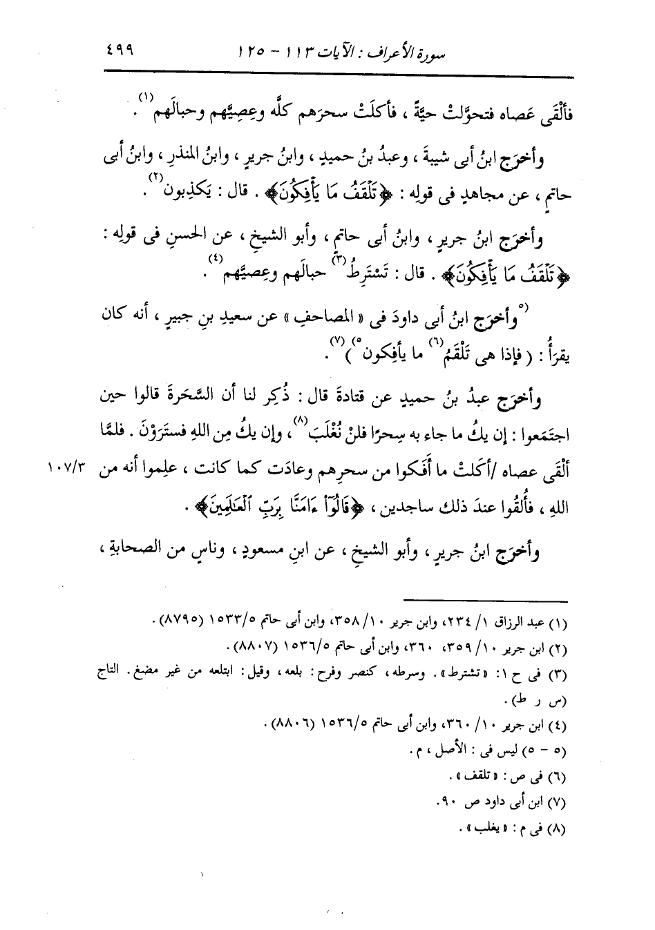 وأخرج ابن جرير ، وَابن أبي حاتم وأبو الشيخ عن الحسن في قوله {تلقف ما يأفكون} قال : تسترط حبالهم وعصيهم.