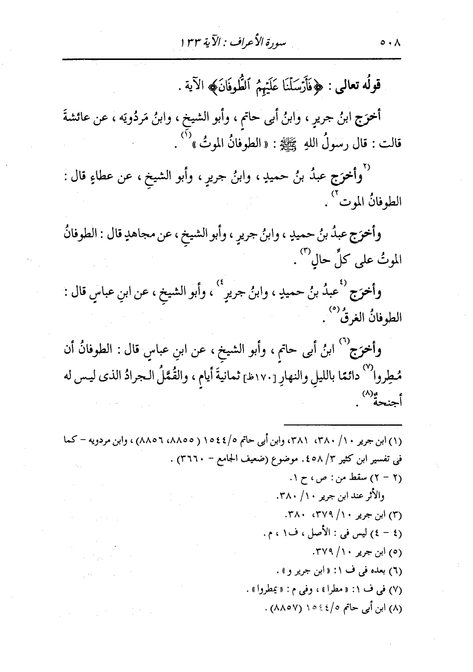 وأخرج عَبد بن حُمَيد ، وَابن جَرِير وأبو الشيخ عن عطاء قال {الطوفان} الموت.