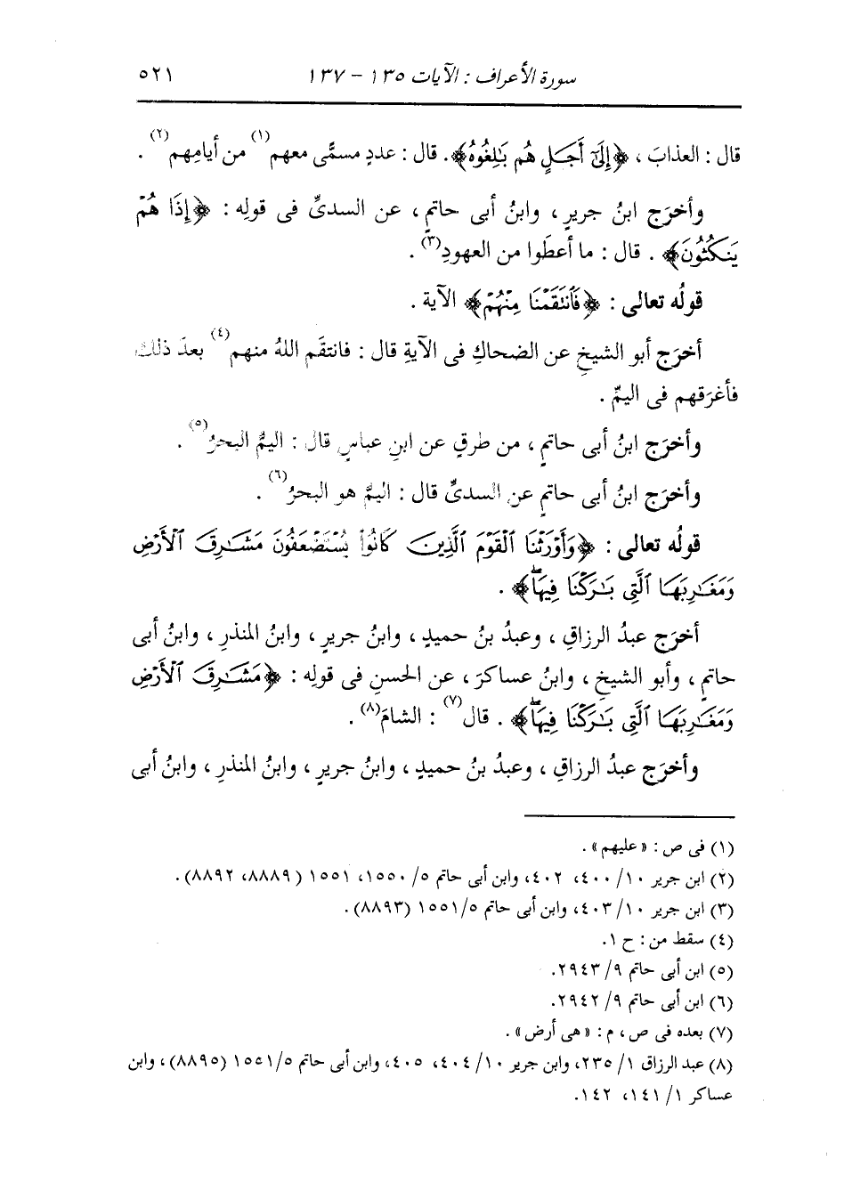وَأَخرَج عبد الرزاق ، وعَبد بن حُمَيد ، وَابن جَرِير ، وَابن المنذر ، وَابن أبي